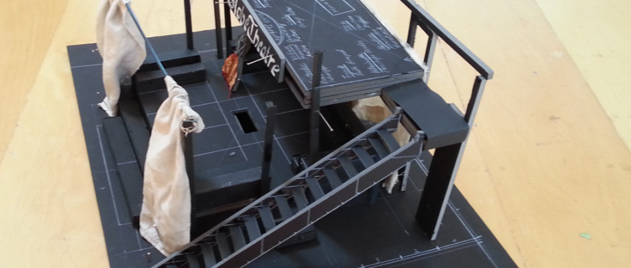Die besondere Herausforderung an diesem Projekt war, in einem „untheatralischen Saal“ Orchester und Schauspielern, einen ansprechenden Raum für die künstlerische Darbietung zu schaffen. Mit dem Einverständnis des musikalischen Leiters, habe ich ein einstöckiges Gerüst mit Auf- und Abgängen für das Orchester, eingebaut. Das Orchester spielte über den Sängern, etwas versetzt, um den Blickkontakt zwischen dem Dirigenten und den Sängern zu gewährleisten. Der optische Raum war inspiriert vom Elisabethanischen Globe Theater.